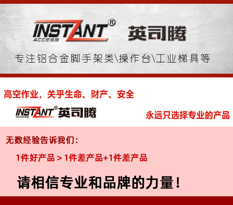 INSTANT英司腾 工业级SPAN500冷压型系列产品严格按照欧盟EN1004 Class 3(3级载重标准)设计制造,并取得专业级的TUV安全载荷等认证。