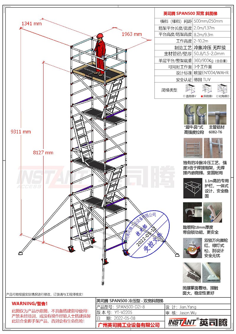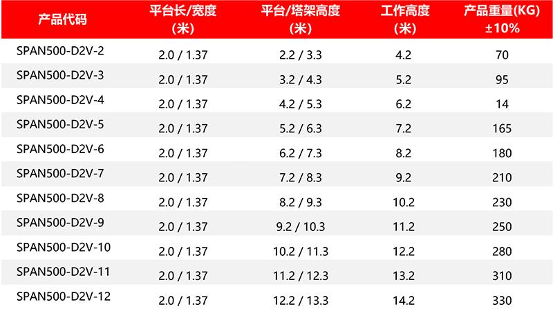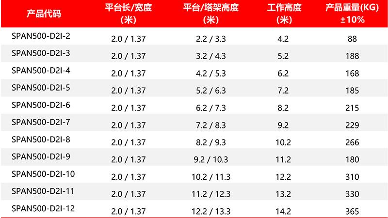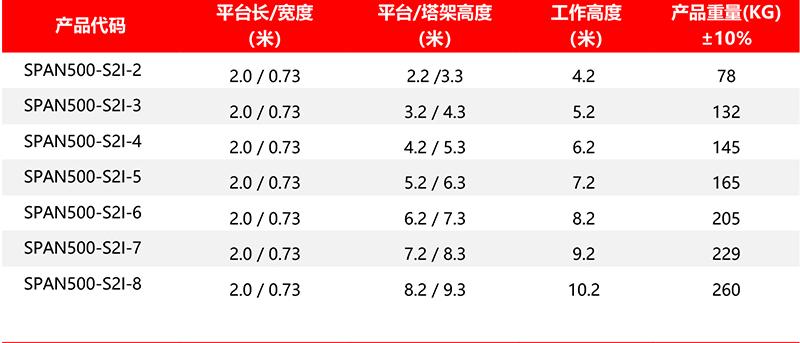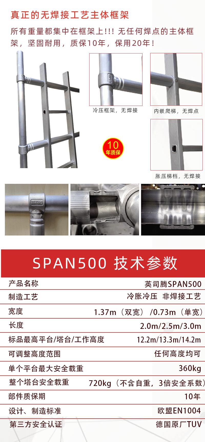 SPAN500 工业级冷压型/双宽系列/直爬梯 铝合金脚手架型号列表:
