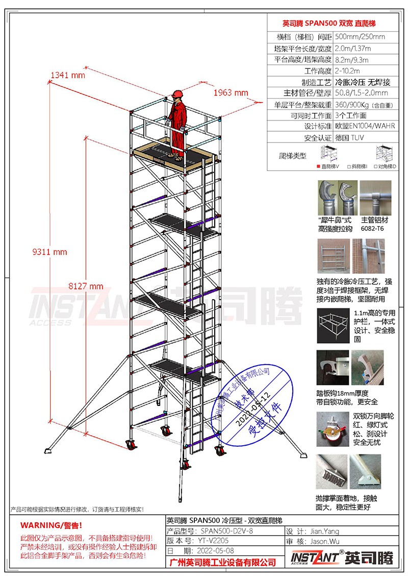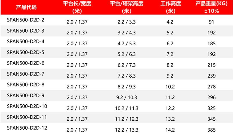 SPAN500 工业级冷压型/双宽系列/直爬梯 铝合金脚手架型号列表: